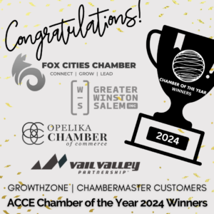 of Chamber of Commerce Executives (ACCE)’s 2024 Chamber of the Year winners. The winners were announced on Wednesday, July 17, during the awards show at ACCE’s Annual Convention in Dallas. GrowthZone is proud to have been there to be one of the first to congratulate the winners as the official 2024 Chamber of the Year sponsor.