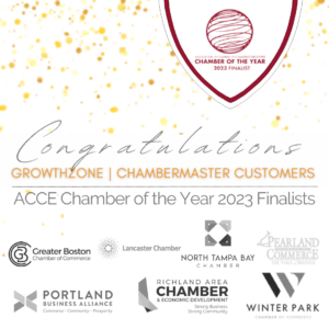 GrowthZone is especially proud to share the announcement of the 2023 Association of Chamber of Commerce Executives (ACCE)’s Chamber of the Year finalists as seven of the 12 named use GrowthZone or ChamberMaster software.
